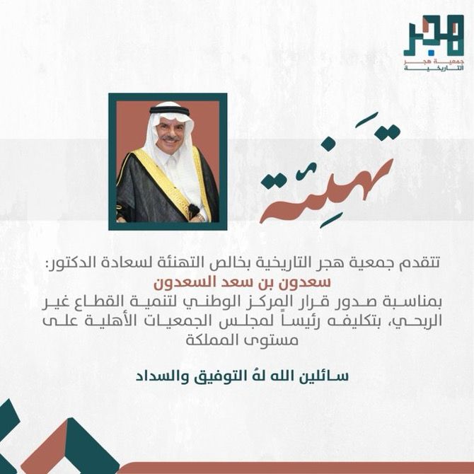‏تتقدم جمعية هجر التاريخية بالتهنئة